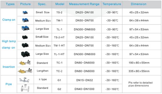 | สื่อการวัด | น้ํา, น้ําทะเล, น้ําเสีย,แอลกอฮอล์, น้ํามันต่าง ๆ และสื่ออื่น ๆ ที่สามารถนํา ultrasound ไปในเหลวเดียวที่เรียบร้อยและมั่นคง |